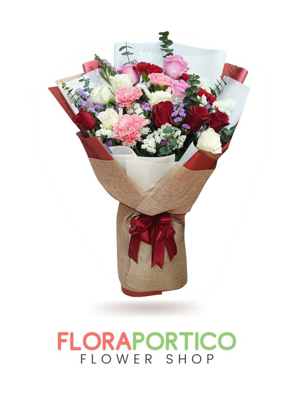 MARGOT Bouquet is a MIXED FLOWERS OF PHILIPPINES RED AND WHITE ROSE, 3 PINK IMPORTED ROSE with RED & PINK CARNATION and fillers, tied with flower wrappers and satin ribbon. This MARGOT Bouquet is a timeless and thoughtful gift for your loved ones. Same day shipping is available within Metro Manila. For provincial delivery, we suggest contacting our support to get the rate for the specific area.